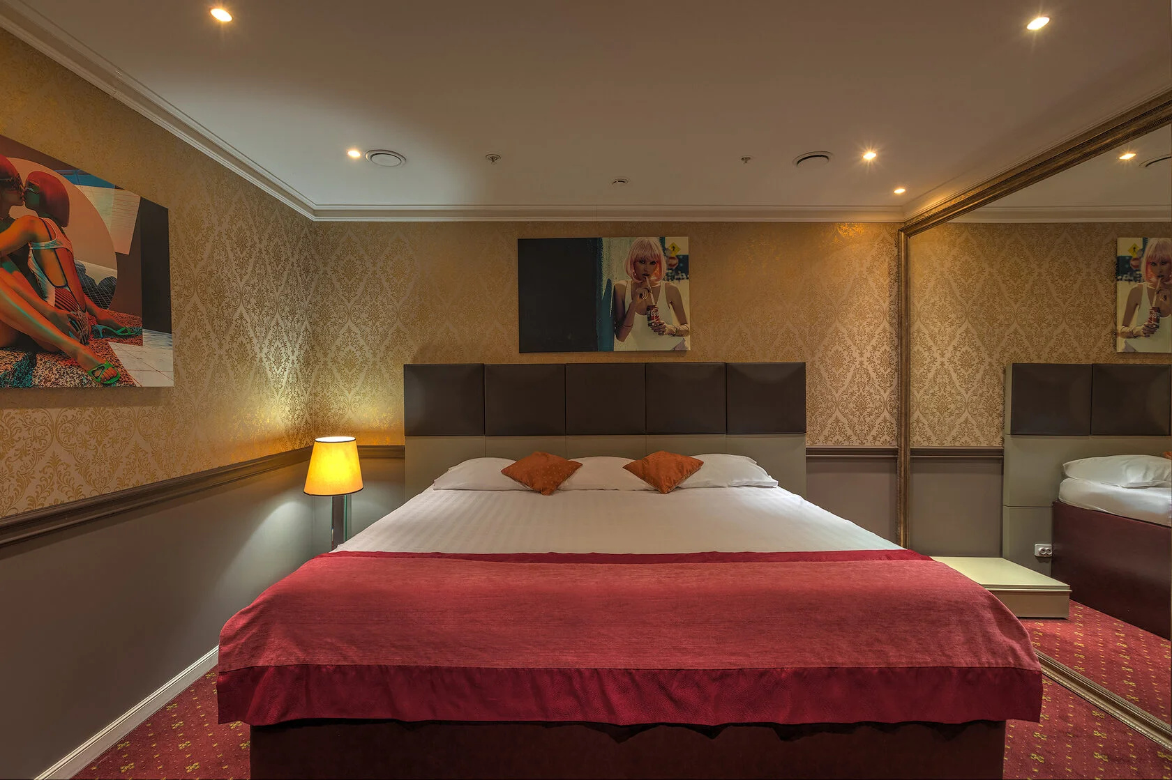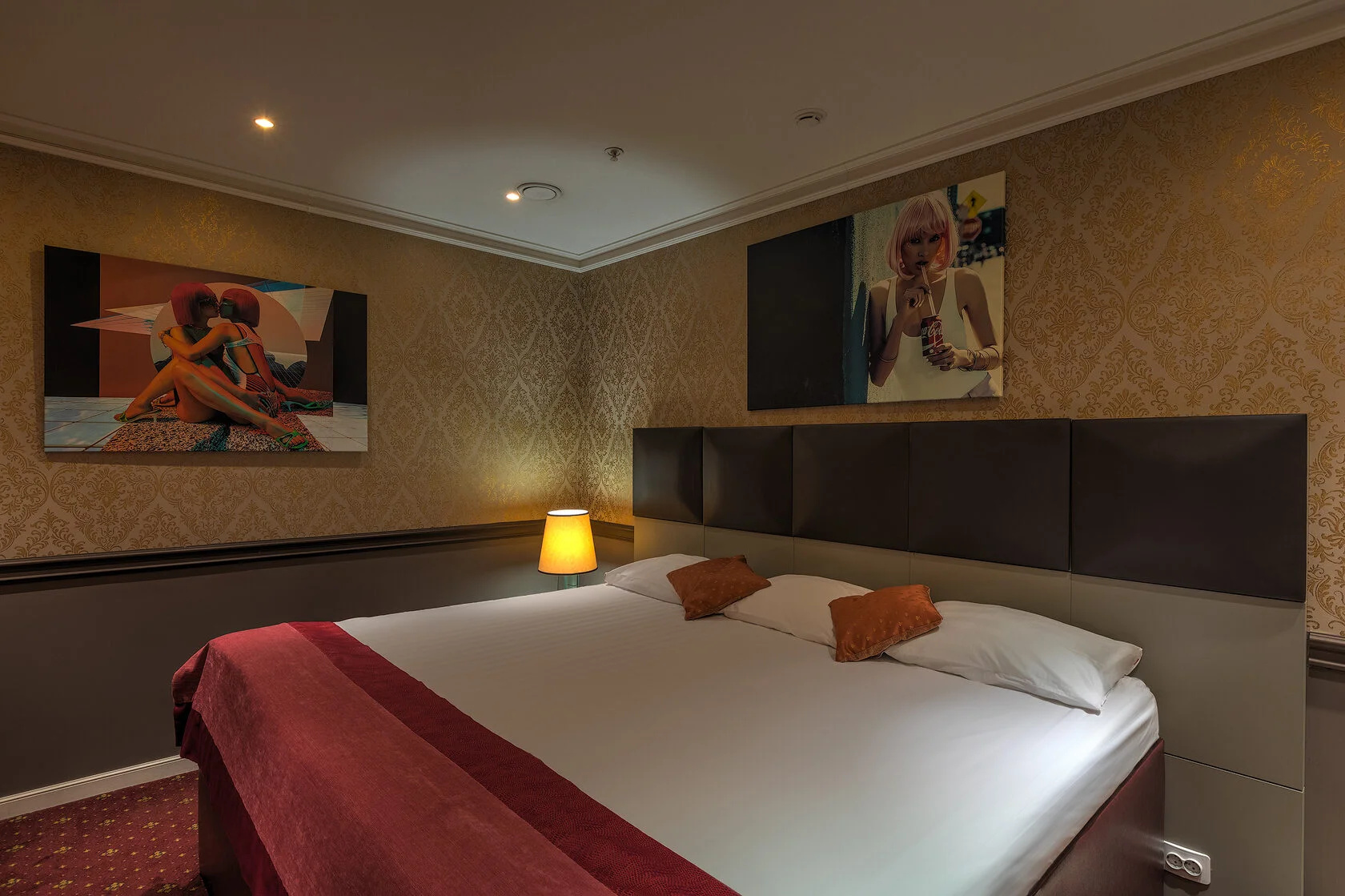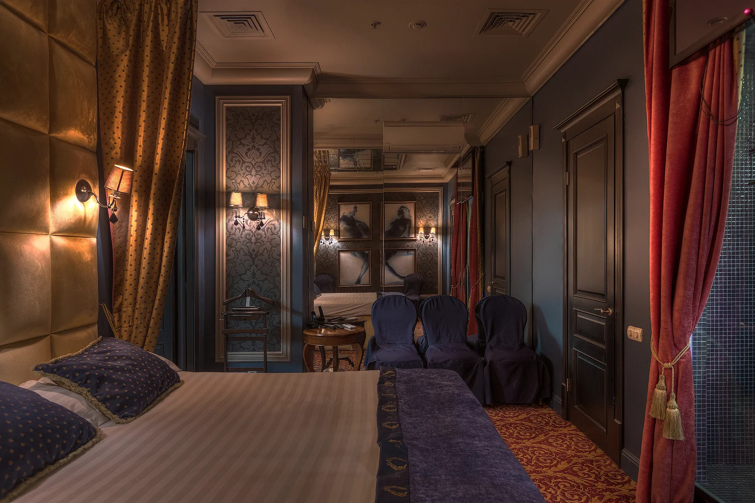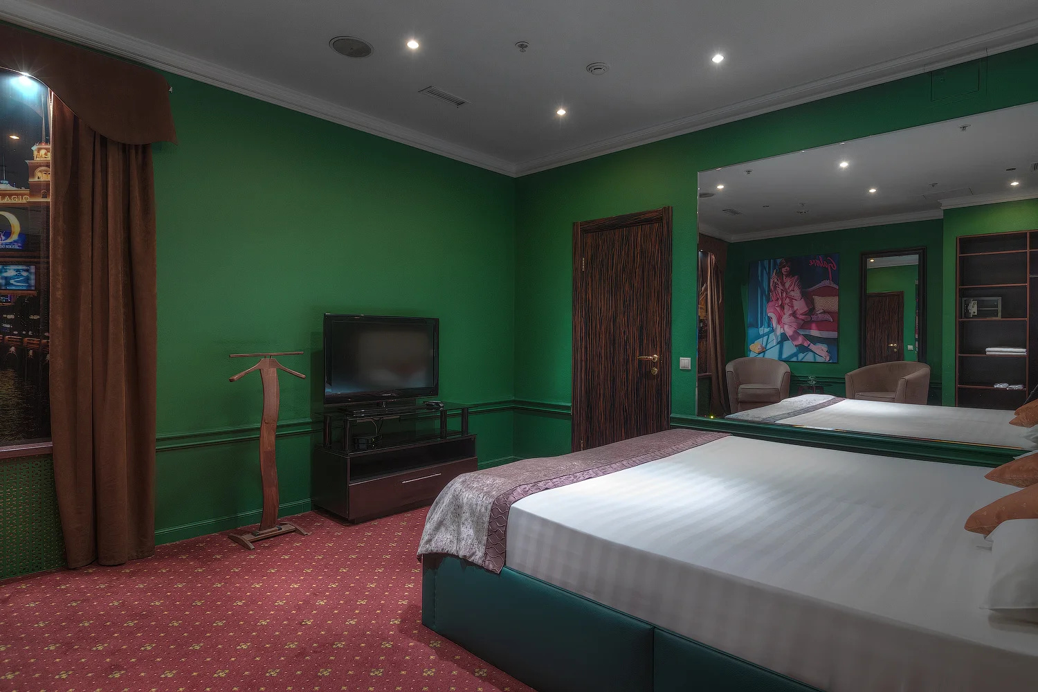 Комфортабельный и просторный однокомнатный номер. Площадь - 20 кв.м. В номере: двуспальная кровать, TV, Wi-Fi, столик, кресла (или диван), шкаф для одежды, сейф, душевая, полотенца, средства гигиены, фен, система вентиляции.Номера могут отличаться по дизайну и конфигурации: есть номера с диваном, а не креслами и кроватью-подиумом, есть номер с прозрачной стеной между спальней и душевой.