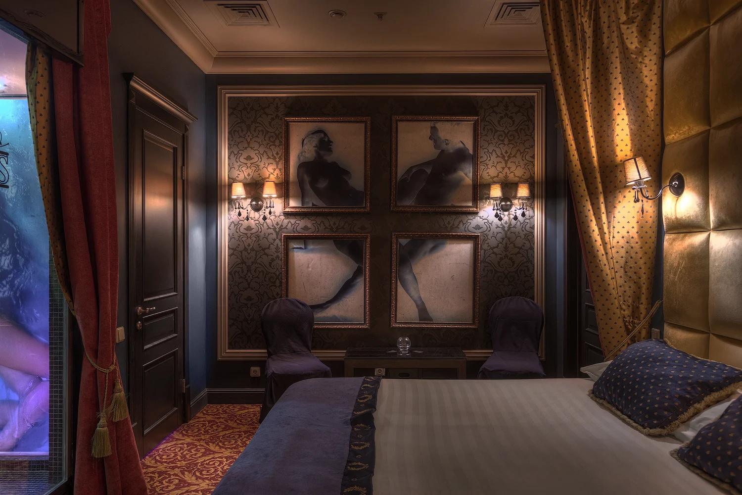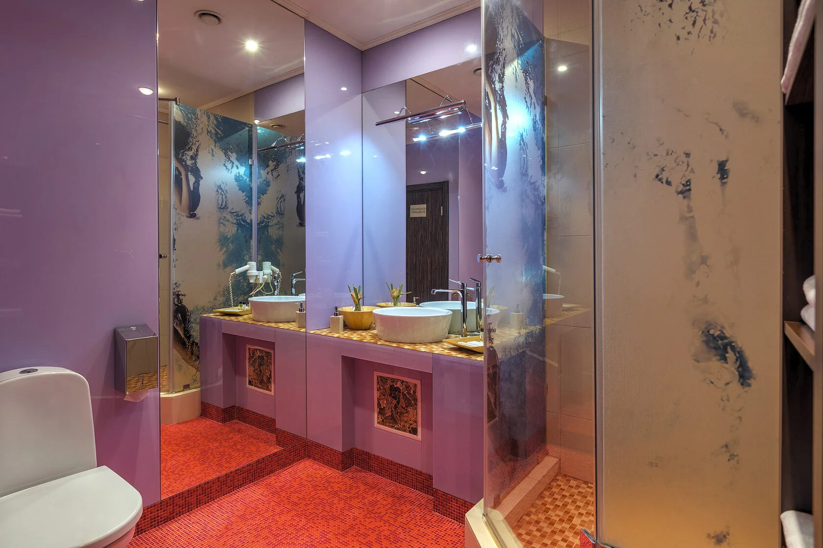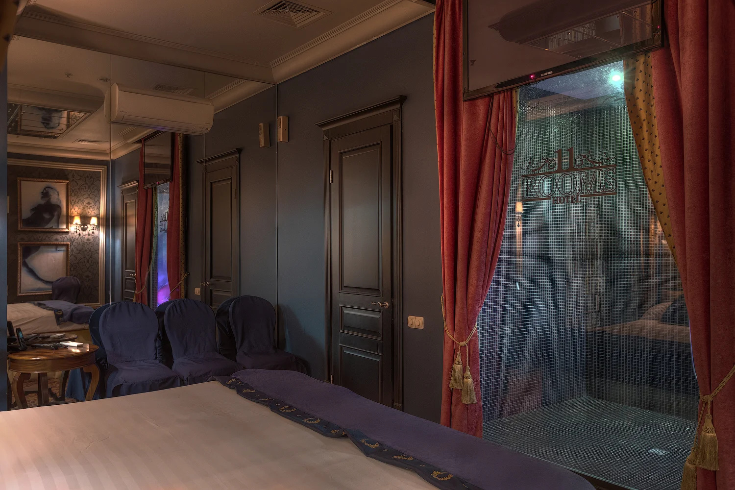 Стильный и просторный двухкомнатный номер с необычными элементами дизайна.В номере: двуспальная кровать, Wi-Fi, мягкий диван, стол, большой TV, караоке.Площадь номера - 65 кв.м.Есть два номера с разным оформлением - №10 и №11.