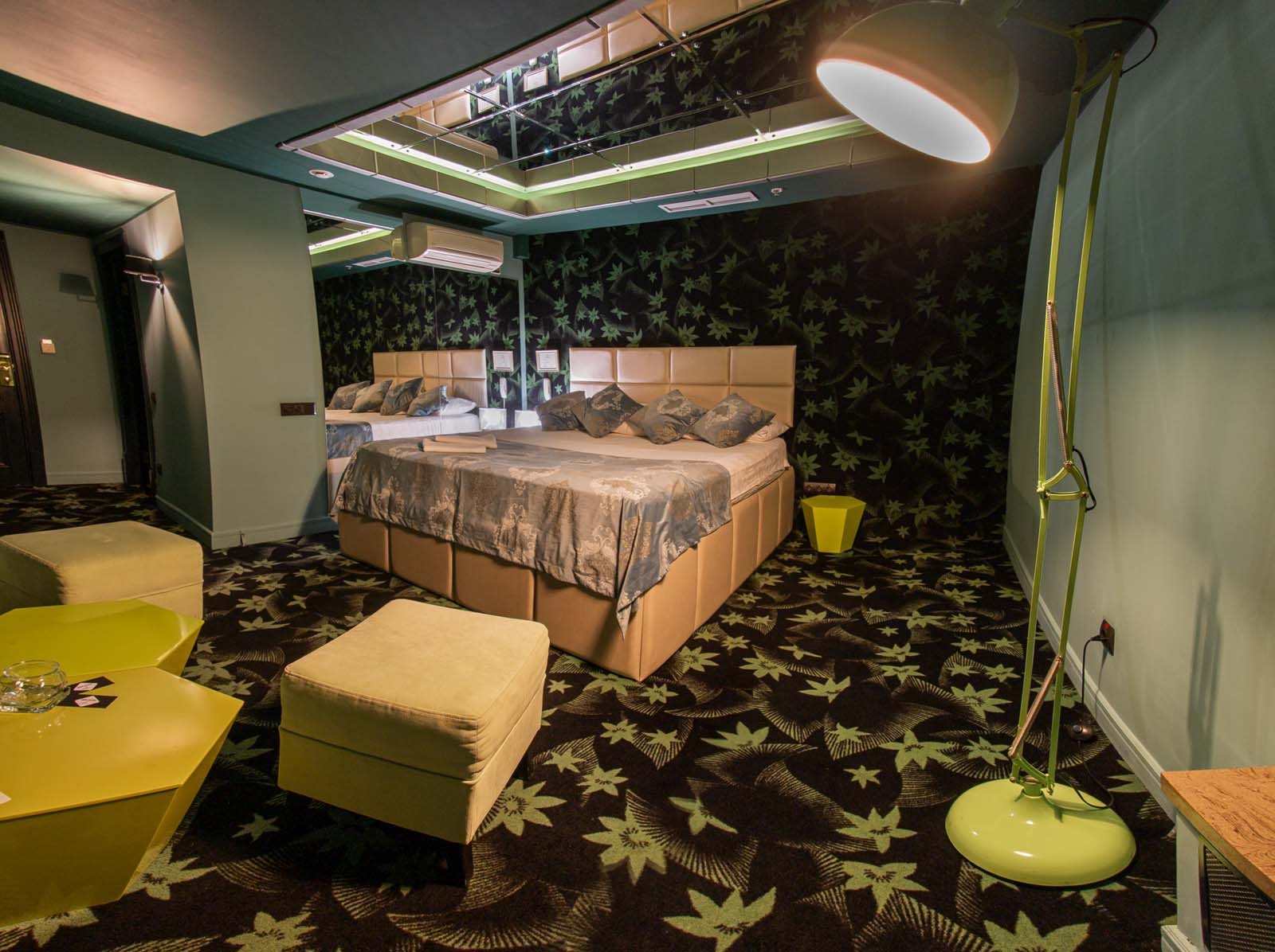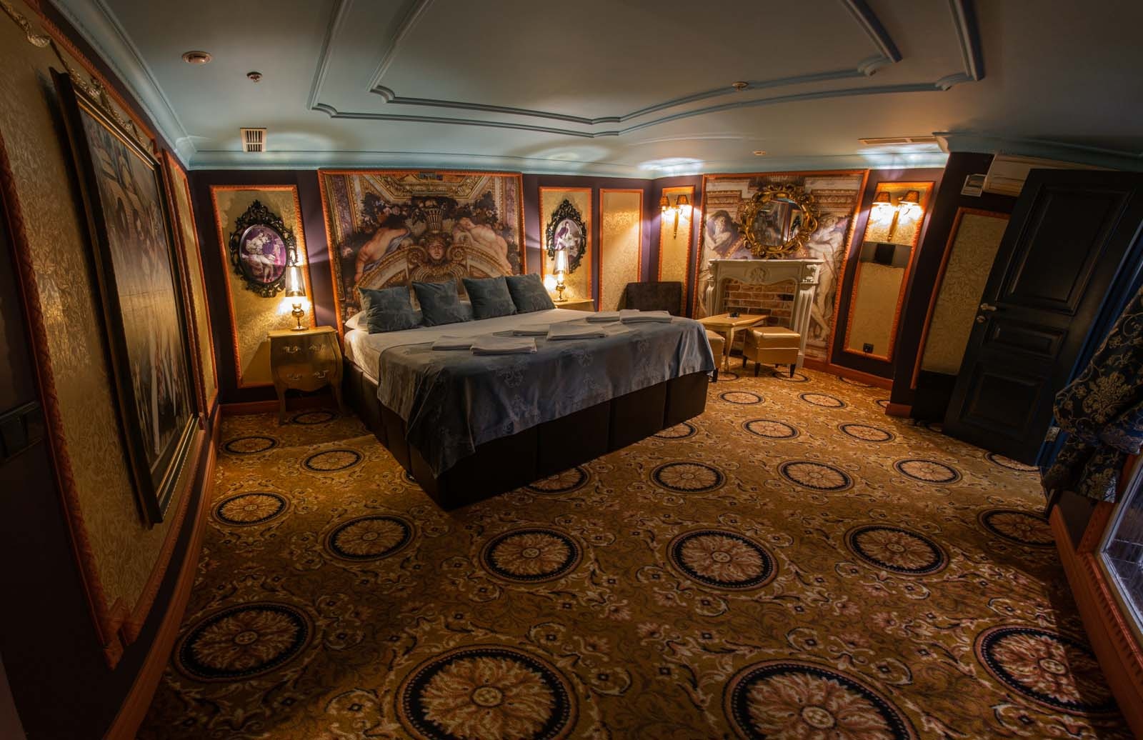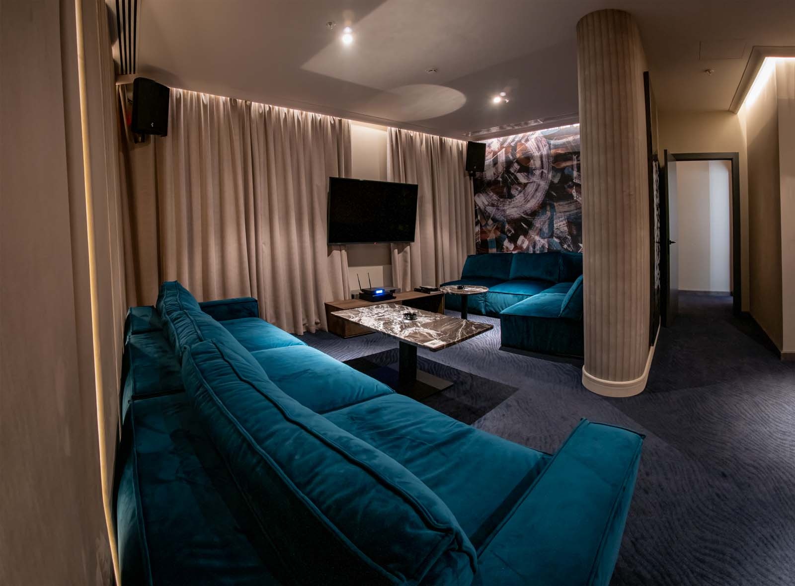 Стильный и очень просторный трехкомнатный номер с двумя спальнями и гостиной. В спальнях - широкие двуспальные кровати, шторы black-out.В гостиной - мягкая мебель, большой TV, проектор и караоке с акустической системой.
