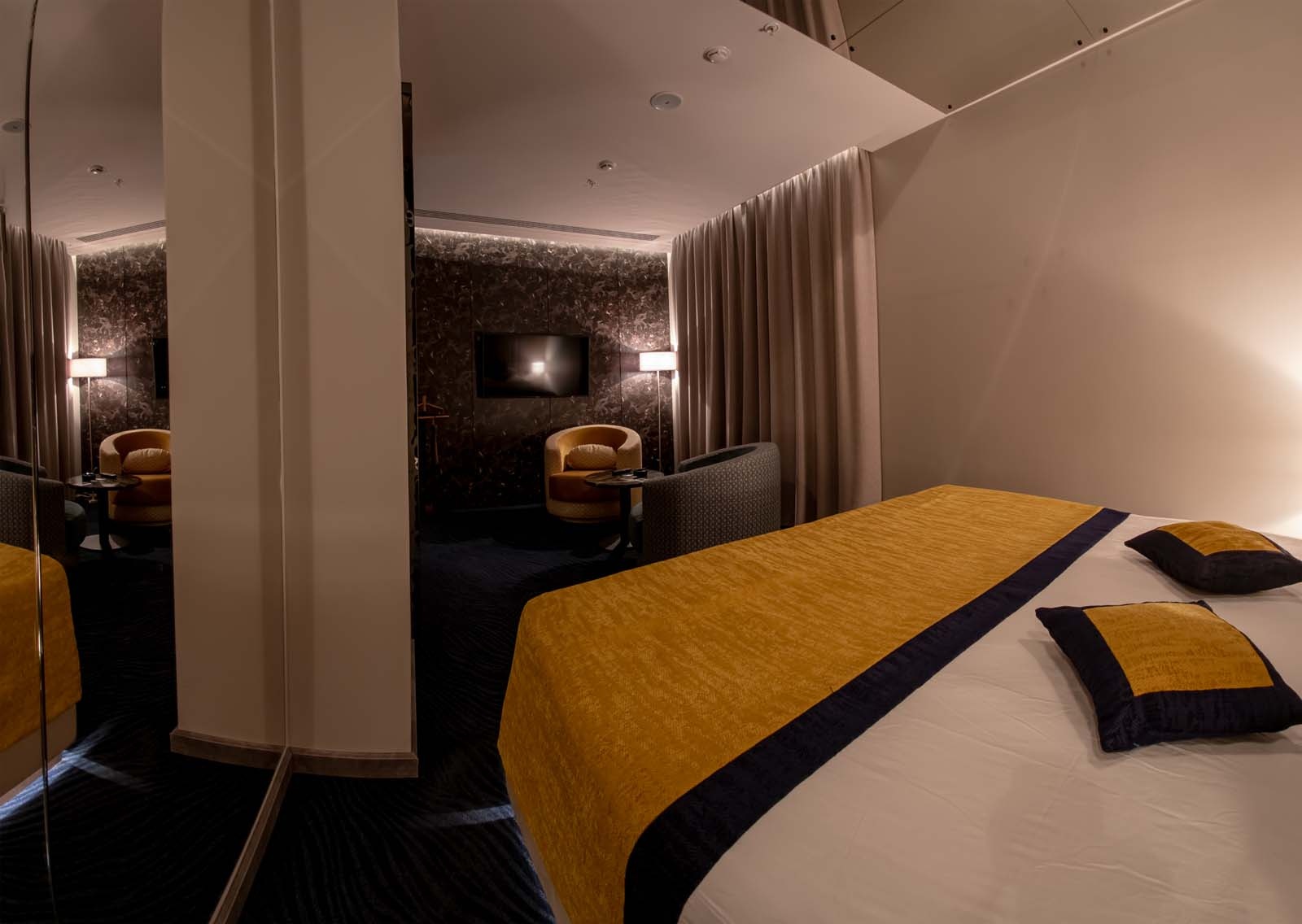 Комфортабельный и просторный двухкомнатный номер с гостиной и спальней. В номере широкая двуспальная кровать, Smart TV, быстрый Wi-Fi, шторы black-out, отличная звукоизоляция, душевая с гигиеническими принадлежностями.