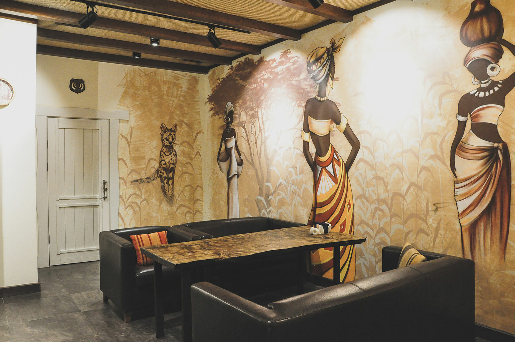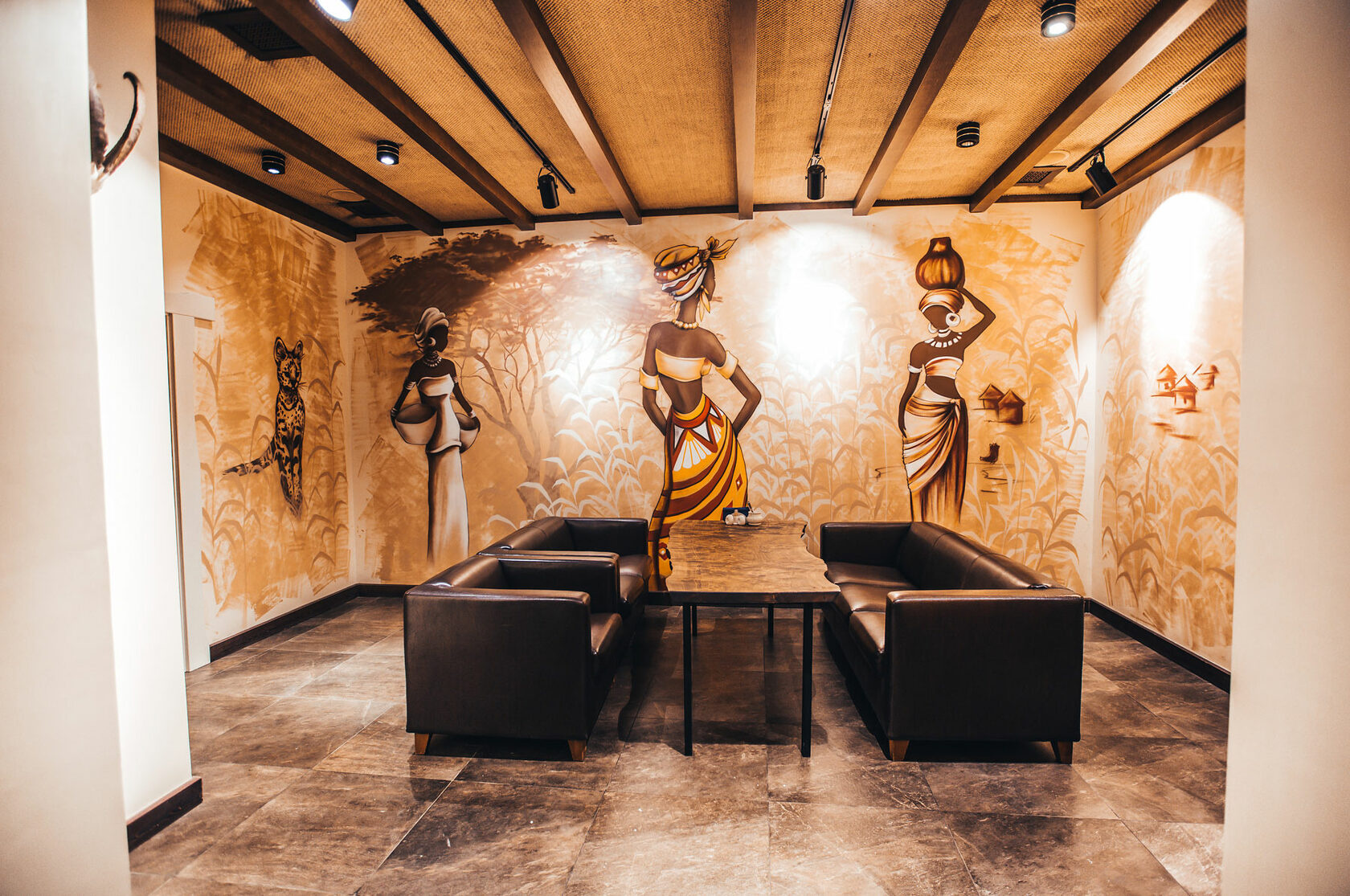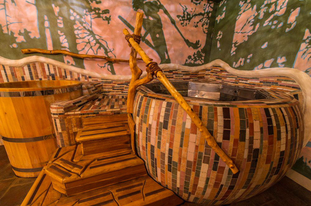 Новый комплекс в банях мира. В атмосферу загадочной, далёкой Африки гостей погружают великолепные рисунки на стенах и отделка в теплых тонах. Уютный и очень теплый по своей атмосфере номер подойдёт для небольшой компании.