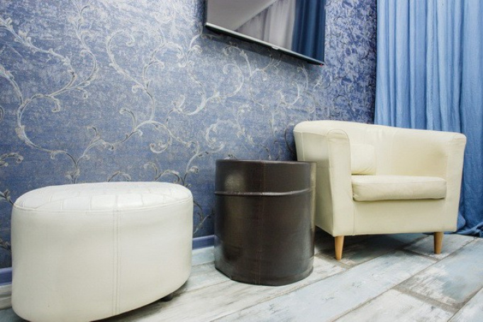 «Улучшенный» номер создан по особому принципу: когда без внутренних перегородок и стен пространство комнаты разделено таким образом, что визуально выделяется сразу несколько комнат. В номере есть небольшая прихожая, уютная спальня со шкафом для одежды и двуспальной кроватью, ванная и даже крохотная гостиная, представленная овальным журнальными столиком со стеклянной столешницей, окантованной деревянным элементом, и банкеткой, украшенной стежками капитоне.