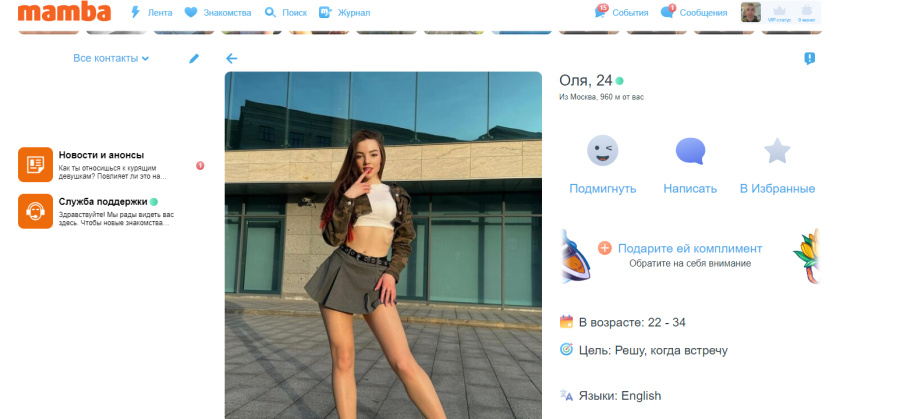 Золотой серединой для поиска полусерьезных отношений выступает сервис Mamba. Это один из старейших сайтов знакомств в стране с более чем 30 миллионами зарегистрированных пользователей. Ежедневно здесь регистрируют более 2 тысяч аккаунтов. Иными словами, есть из чего выбирать. Из плюсов стоит отметить удобную опцию поиска по геопозиции, которая показывает анкеты в непосредственной близости.