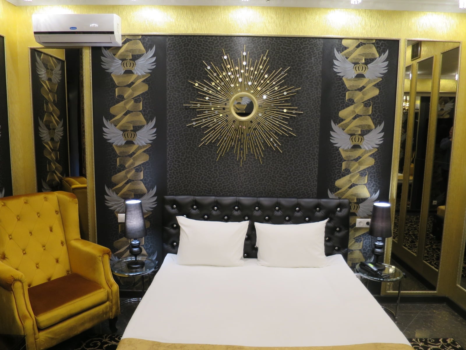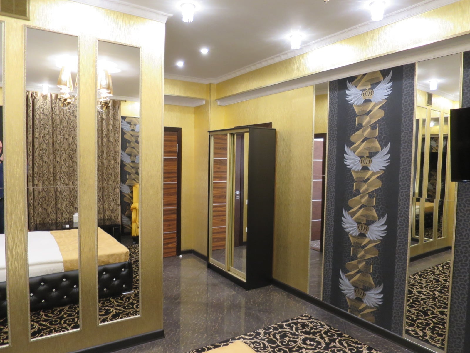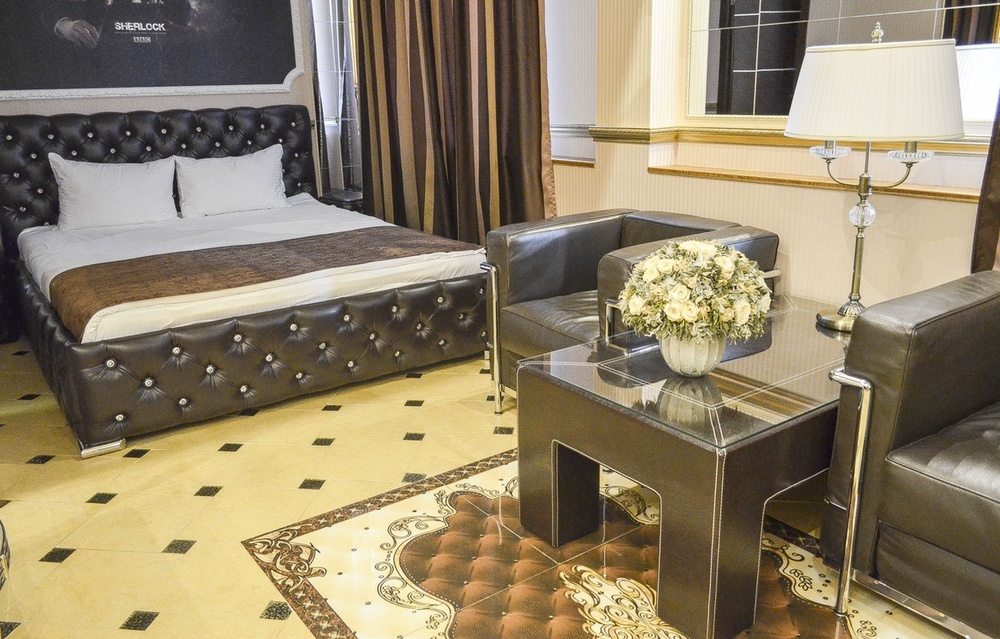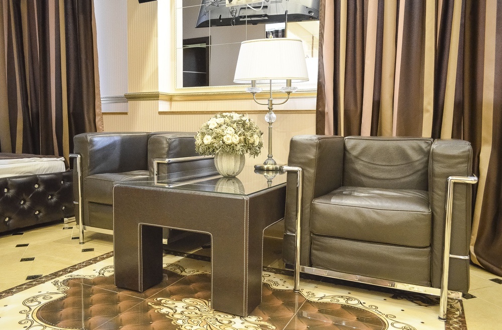 Мы оформили и оборудовали этот номер так, чтобы погрузить вас в атмосферу строгой, изысканной роскоши, присущей жизни настоящих магнатов - почти всемогущих привилегированных персон, принимающих самые важные решения.